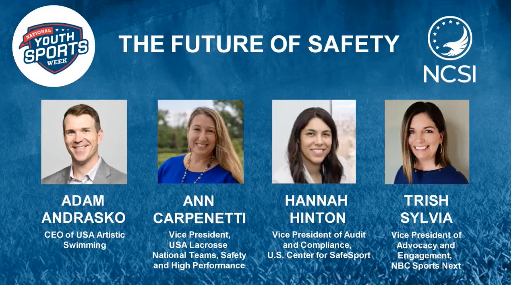 Trish Sylvia, the founder of NCSI and Vice President of Advocacy and Engagement with NBC Sports Next led the discussion panel of experts from USA Lacrosse, USA Artistic Swimming, and the U.S. Center for SafeSport. The discussion yielded valuable insights for sports organizations who want to facilitate safe play as well as parents who are seeking out the right program for their kids.